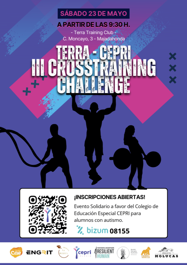 El próximo 23 de mayo, a partir de las 9:30 horas, se celebrará el III Entrenamiento Solidario de CrossFit en las instalaciones de Terra CrossFit, situadas en C/ Moncayo, 3 (Majadahonda). Se trata de una jornada deportiva y solidaria cuyo objetivo es apoyar al Colegio CEPRI y dar visibilidad al autismo a través del deporte y la participación comunitaria.